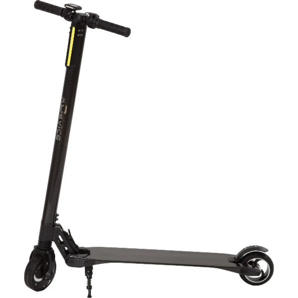 Материал изготовления техники – карбон, пластичный и легкий. Именно он является главным при производстве элитных спорт-каров. Компактный эргономичный электросамокат весит 6,3 кг, поэтому при необходимости может быть сложен в машину. Мощность мотор-колеса в 250 Вт, в сочетании с карбоновым корпусом и литий-ионной батареей позволяет плавно передвигаться набольшие расстояния со скоростью до 25 км/час.  Тормозная система техники оснащена технологией рекуперативного торможения (EBS), гарантирует безопасность ездока. Колеса представлены следующими параметрами - 920*410*1000mm, размер – 5,5 дюймов