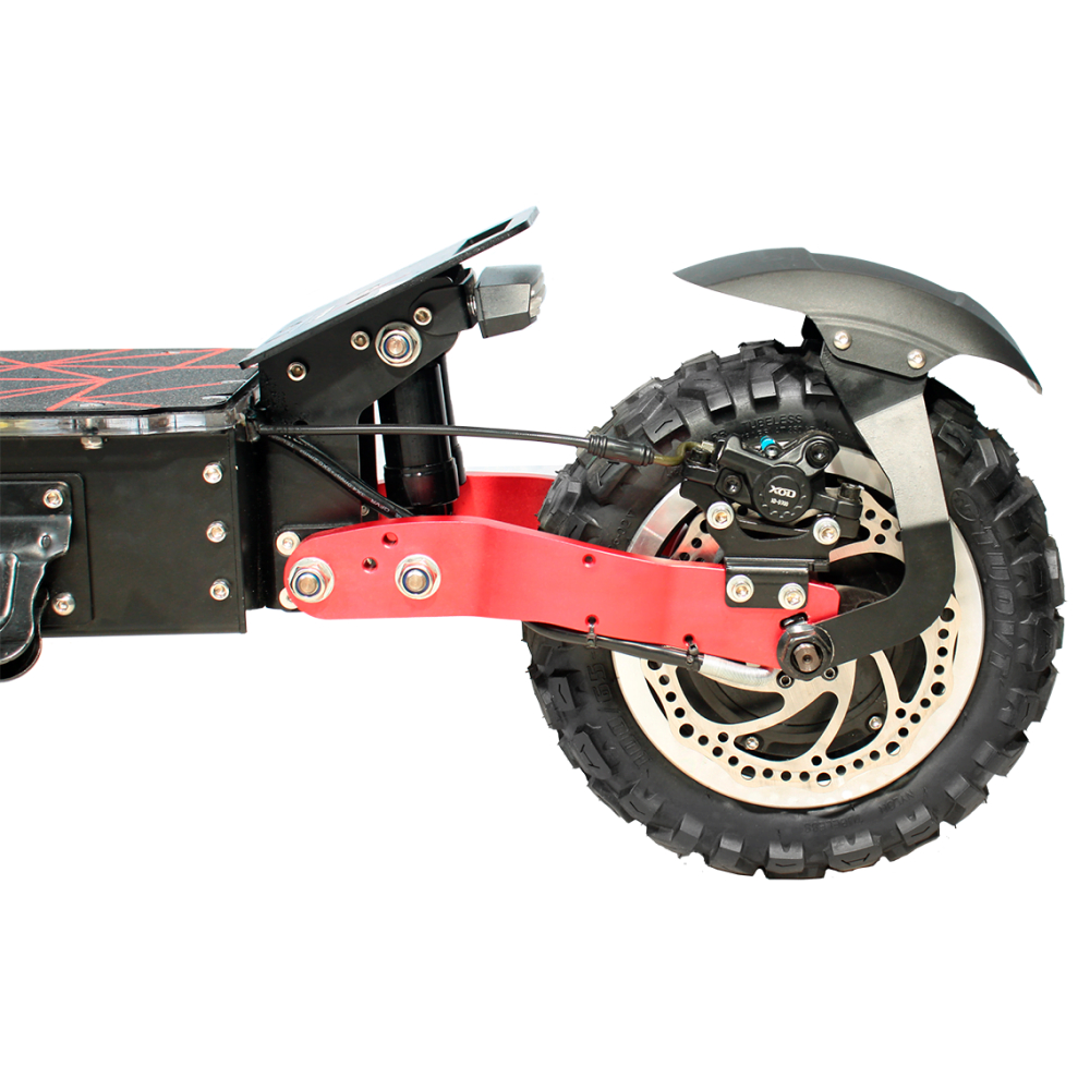 Самокат может достигать скорость до 90км/ч, все благодаря новинке в виде мотора колеса по 3000w каждое, основу которым составляет инновационные магниты шириной 6 см. Управление данным устройством очень плавное, динамичное, благодаря умным датчикам с синусными контролерами в 45 ампер каждый, это прорыв в индустрии электросамокатов.