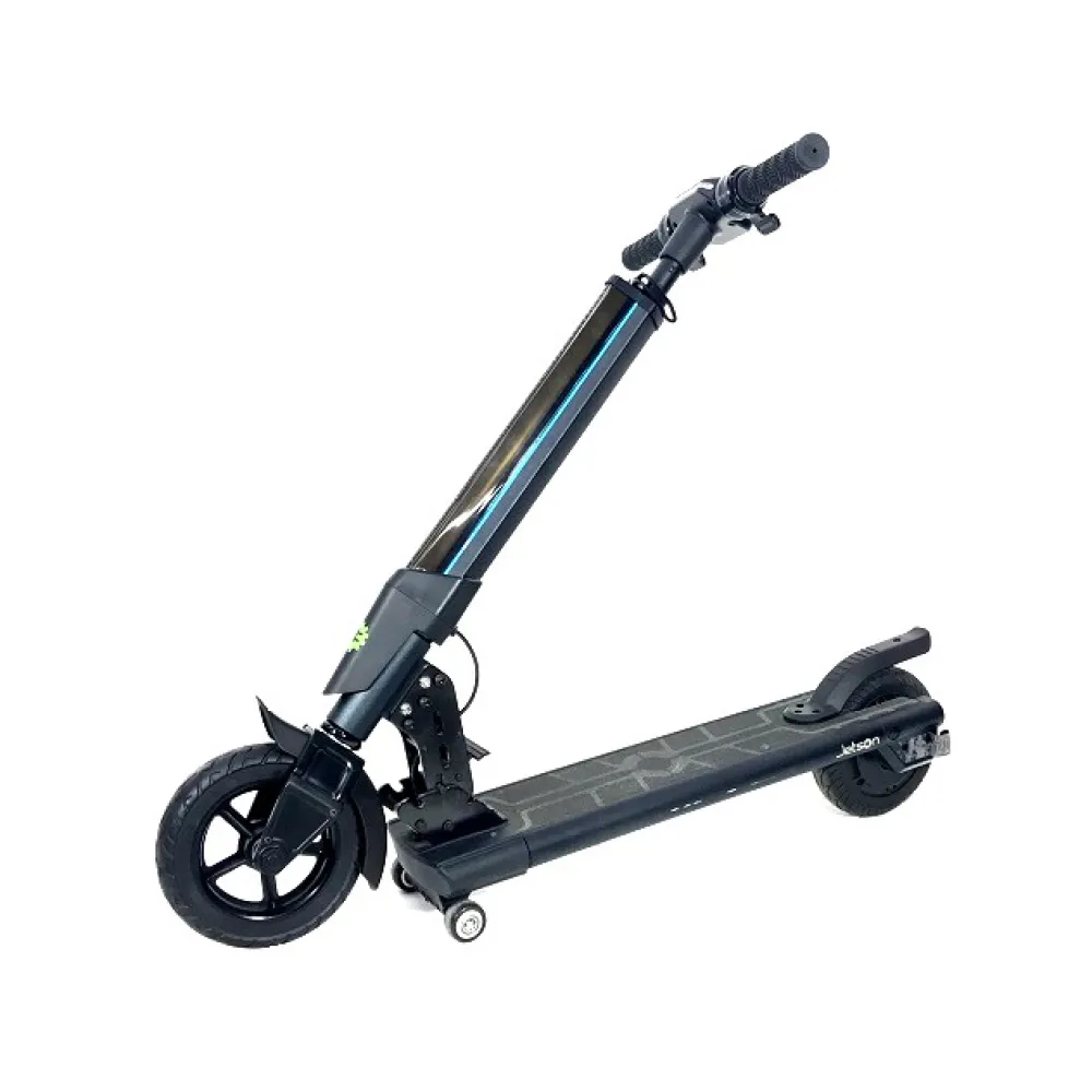 Электросамокат Jetson L9 предназначен для городских асфальтированных дорог, его колеса имеют размер 8 дюймов с эластичными бескамерными шинами. Они не боятся проколов, вам не придётся менять покрышки. Транспорт имеет складную конструкцию, габариты самоката уменьшатся в два раза в сложенном состоянии. Легким нажатием на рычаг рулевая стойка отпускается вниз. Для удобной транспортировки в комплекте предусмотрены дополнительные, транспортировочные колеса. Их можно устанавливать по желанию.