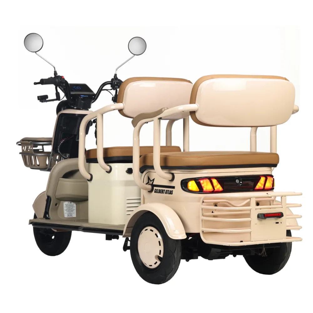 Электротрицикл Rutrike Gelbert Atlas 48V/60V 600Вт – это современное транспортное средство, созданное для комфортного передвижения в условиях города и за его пределами. Модель выделяется элегантным бежевым оттенком, придающим ей утончённый и стильный вид, а также продуманной компоновкой, которая обеспечивает отличную устойчивость и удобство управления.Благодаря двигателю мощностью 600 W, работающему на диапазоне напряжения 48/60 V, Atlas уверенно стартует и поддерживает стабильную динамику, достигая максимальной скорости до 25 км/ч – оптимального показателя для спокойного городского движения. Компактные 8‐дюймовые колеса способствуют надежному сцеплению с дорогой, что особенно важно при маневрировании в условиях ограниченного пространства.С весом 95 кг и способностью выдерживать нагрузку до 190 кг, этот электрический трицикл демонстрирует баланс между легкостью и прочностью конструкции. Его габаритные размеры (148×81×65 см) позволяют устройству занимать минимальное пространство при хранении и транспортировке, оставаясь при этом функциональным и устойчивым на дороге.Электротрицикл Atlas от Gelbert спроектирован с учетом современных требований безопасности и удобства эксплуатации – надежная система торможения в сочетании с продуманной эргономикой делает каждую поездку не только комфортной, но и безопасной. Эта модель станет отличным выбором для тех, кто ищет практичное и стильное решение для повседневного передвижения, совмещающее высокую технологичность с оригинальным дизайном.
