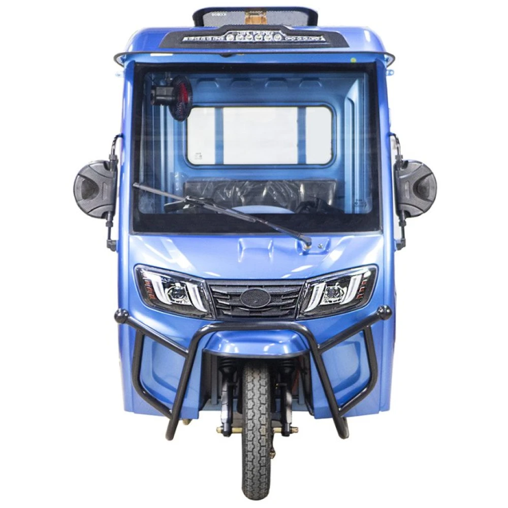 Усиленная конструкция рамы, барабанный тормоз и светодиодная передняя фара гарантируют безопасное вождение в любых условиях. Крытая герметичная кабина с открывающимися с двух сторон дверями обеспечивает защиту от непогоды, а механизм стеклоочистителя поддерживает чистоту лобового стекла.