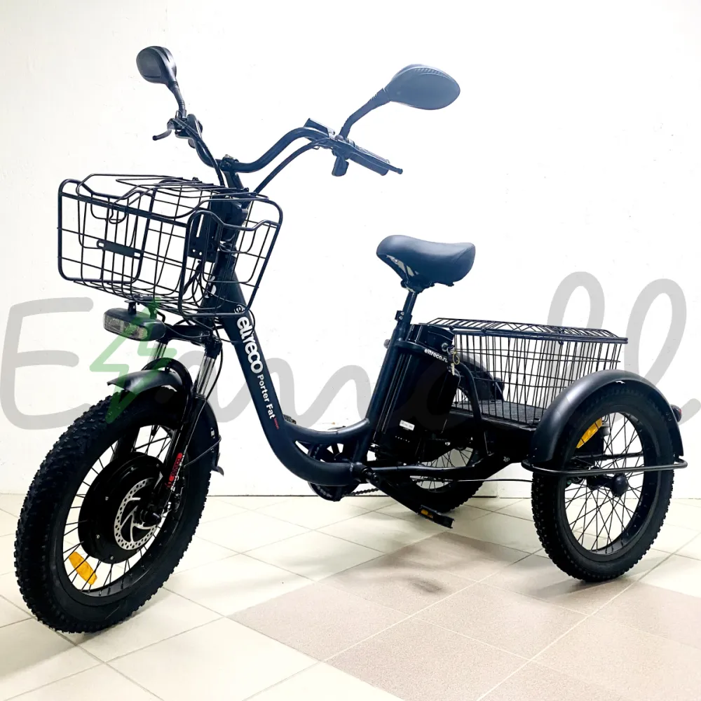 ТРИЦИКЛ ELTRECO PORTER FAT 500 UP! – это современный трехколесный грузовой электротранспорт. Оснащен мощным электродвигателем в 500W, устойчивый и надежный в езде. С ним можно работать на даче, в саду, использовать в поездках по магазинам или для перевозки небольших грузов. Он подходит даже для обычных велопрогулок.