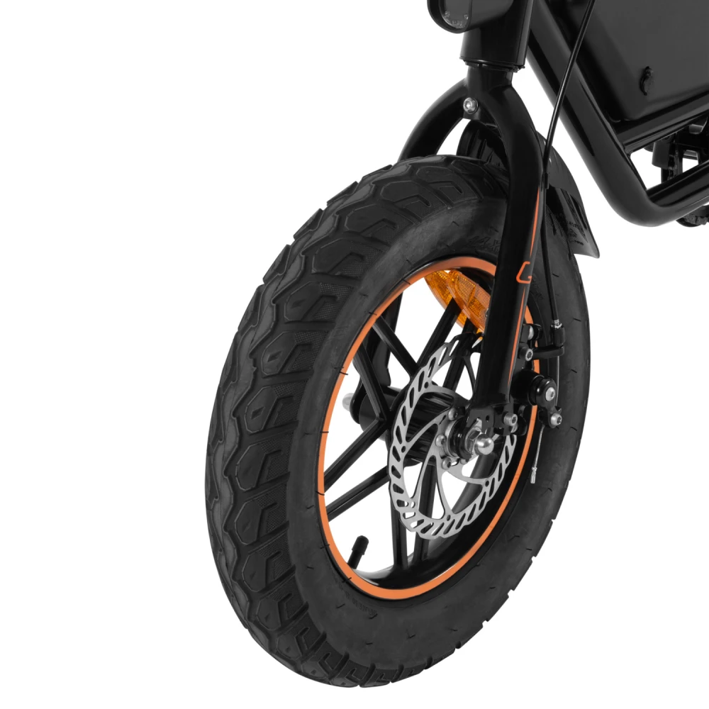 Надёжные дисковые тормоза гарантируют безопасность на любой скорости, а 14-дюймовые колёса обеспечивают устойчивость и уверенный ход. LED-фонарь освещает дорогу в тёмное время суток, а подножка добавляет удобства при парковке.