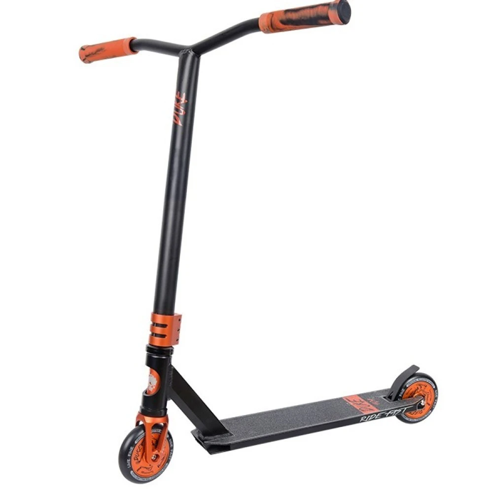 Широкий T-образный руль (ширина 575 мм, высота 550 мм) из алюминия наиболее предпочтителен для моделей данной категории. Такая ширина обеспечивает удобство выполнения разнообразных элементов и трюков при активном катании. На руле также предусмотрены специальные прорезиненные накладки, благодаря которым происходит плотное прилегание рук к рулю, исключается скольжение и потение ладоней.