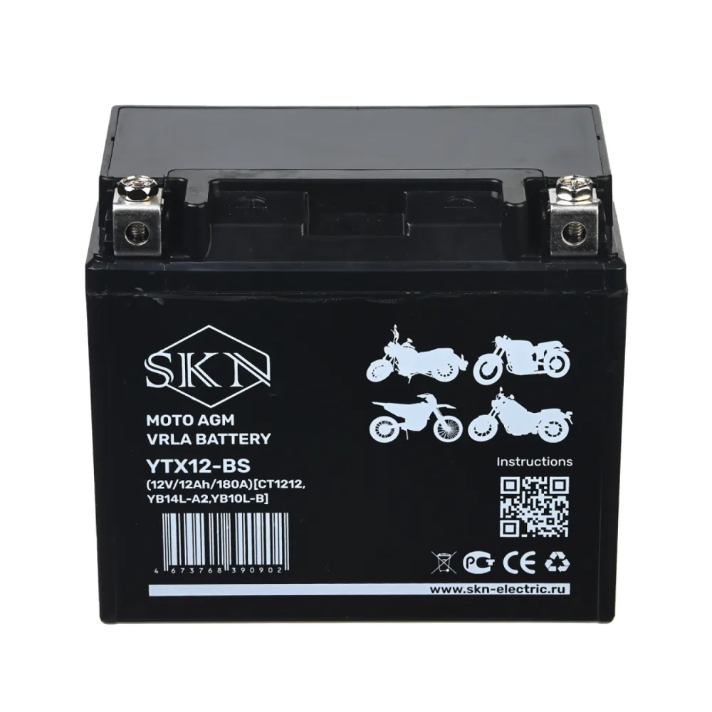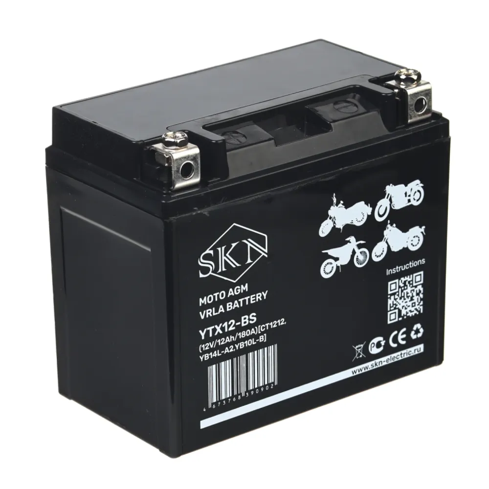 Аккумулятор стартерный для мототехники SKN YTX12-BS (12V/12Ah/180A) [CT 1212, YB14L-A2, YB10L-B]