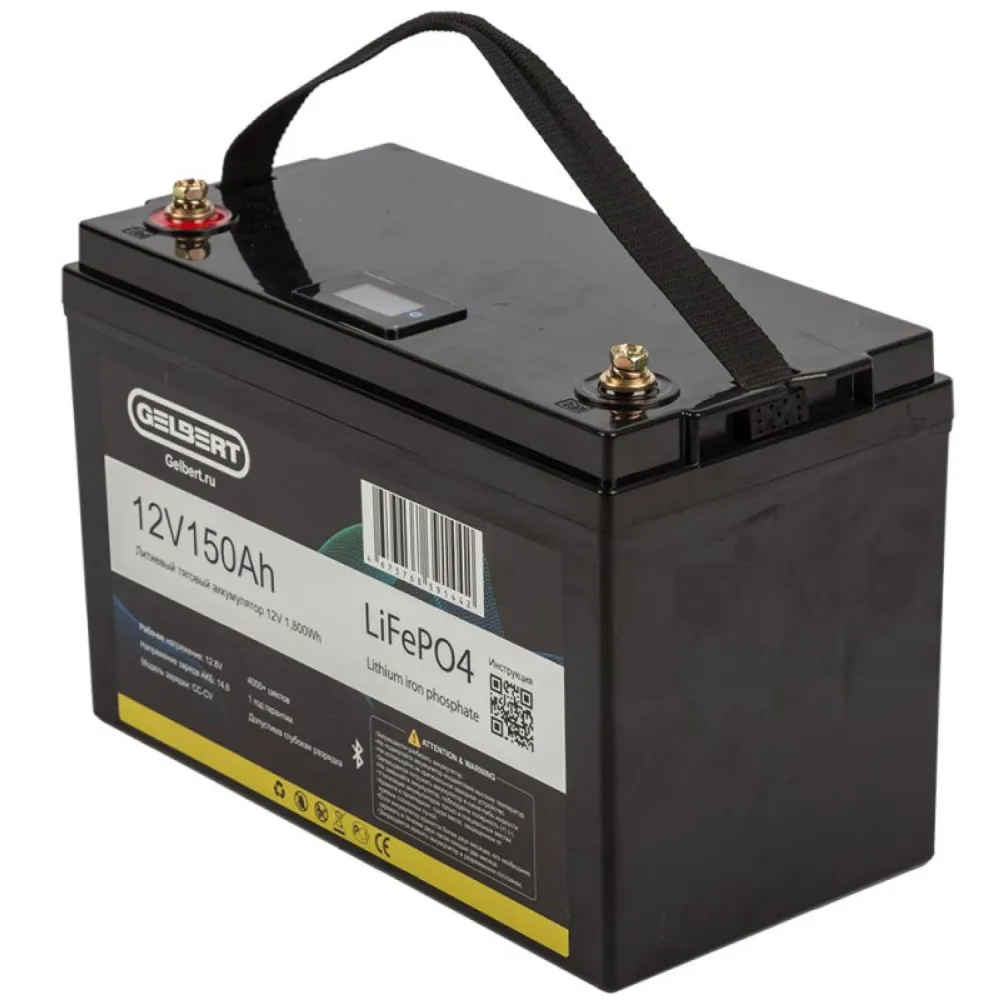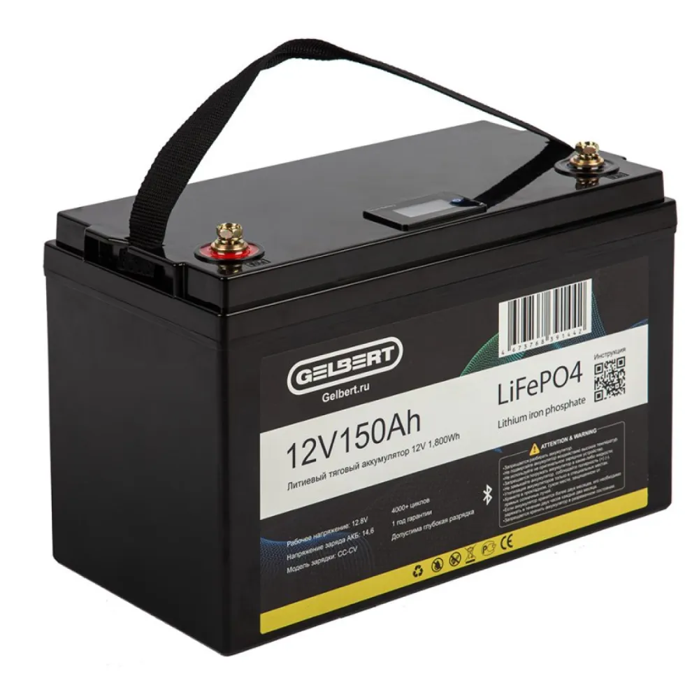 Литиевый тяговый аккумулятор Gelbert LiFePO4 (12V/150Ah/150А/1,800Wh) [6-EVF-150] Bluetooth